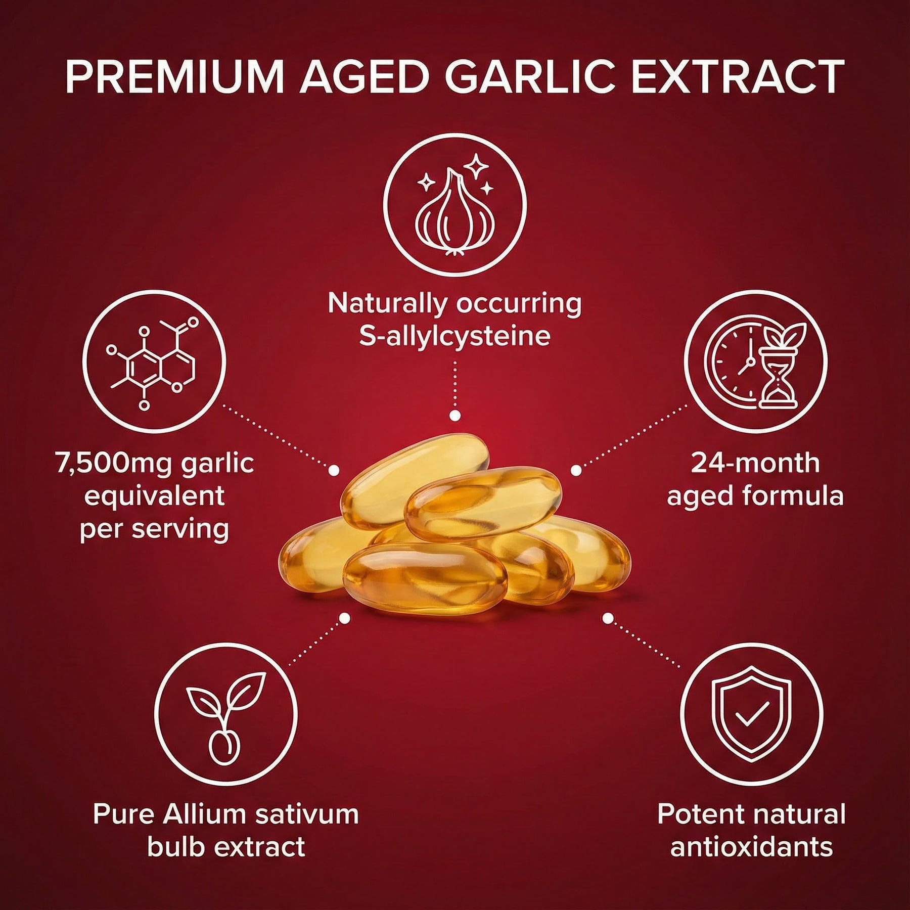 The aging process transforms garlic's compounds into stable, bioavailable antioxidants that help: